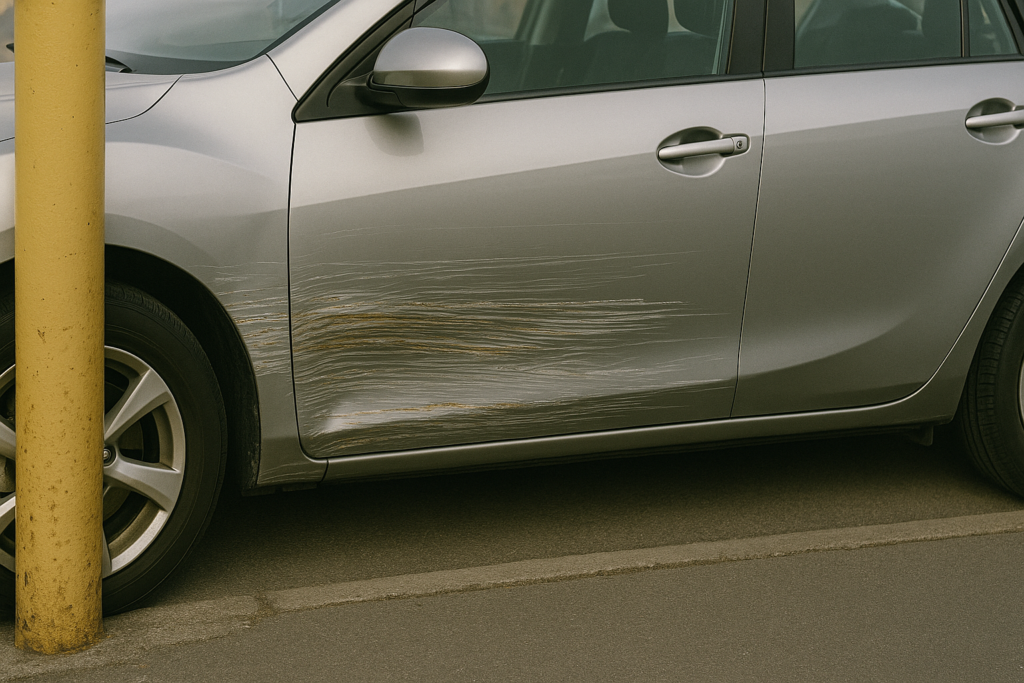 - コンビニ駐車場のポールに「ガリッ」とこすった